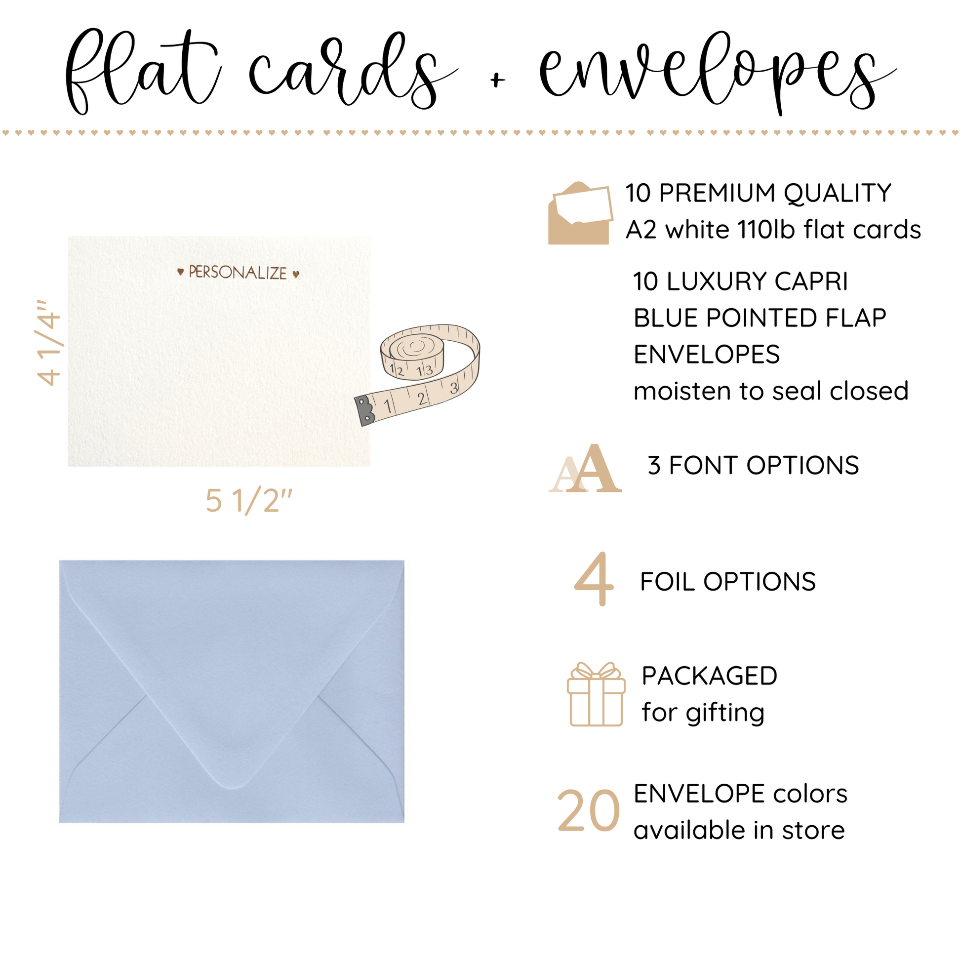 10 Foil Embossed Personalized Notecards and 10 Capri Blue Envelopes