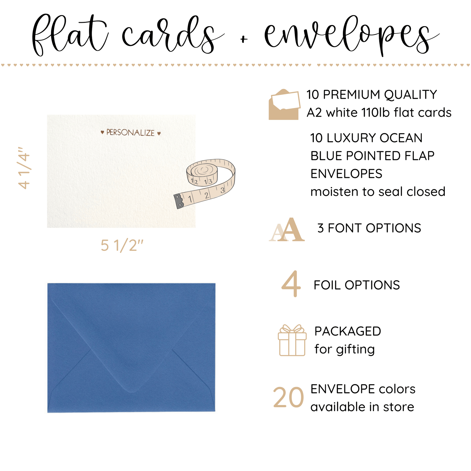 • Set of 10 premium quality flat A2 white 110lb notecards