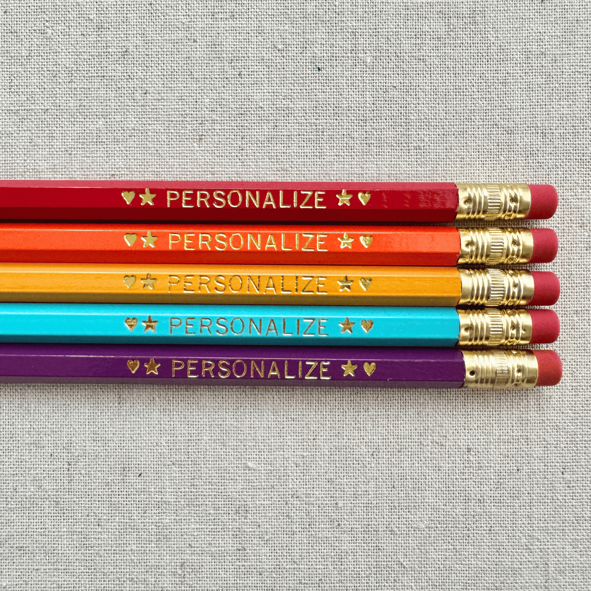 Colors on screens can look a little different in real life. Each pencil is hand-stamped, so tiny variations in imprint depth or foil color are totally normal (and part of the charm).