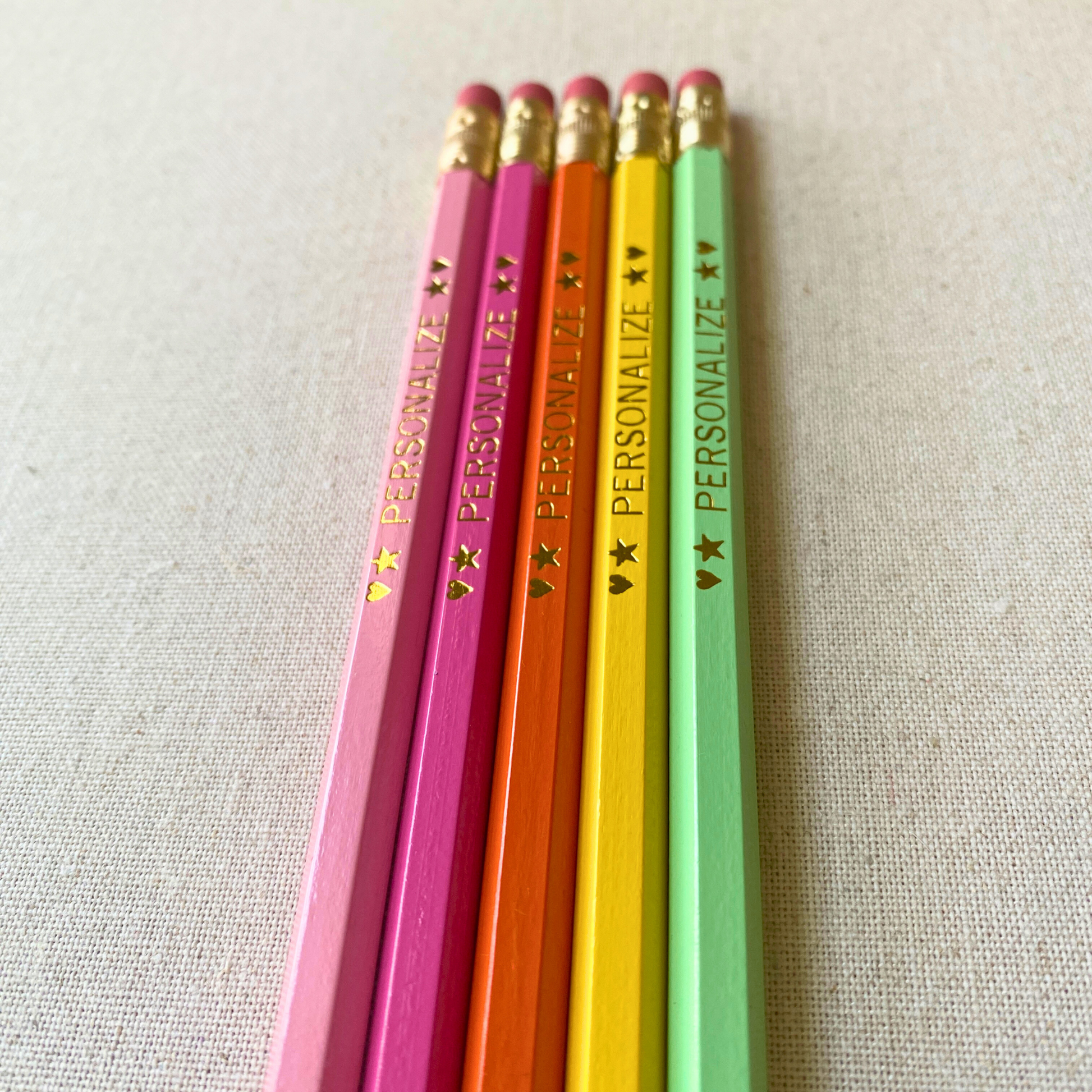 Colors on screens can look a little different in real life. Each pencil is hand-stamped, so tiny variations in imprint depth or foil color are totally normal (and part of the charm).